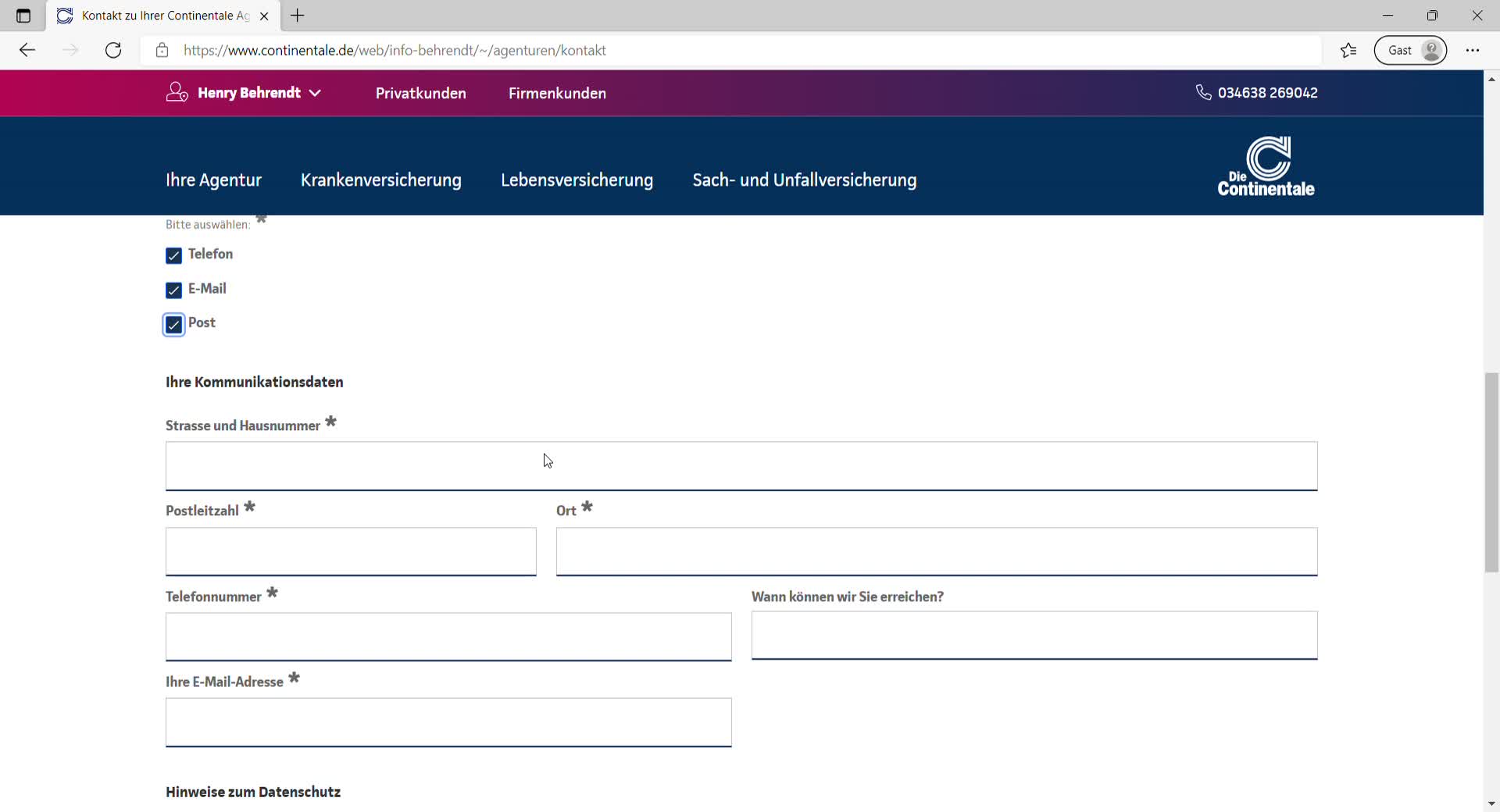 Persönliche Daten - Anschrift